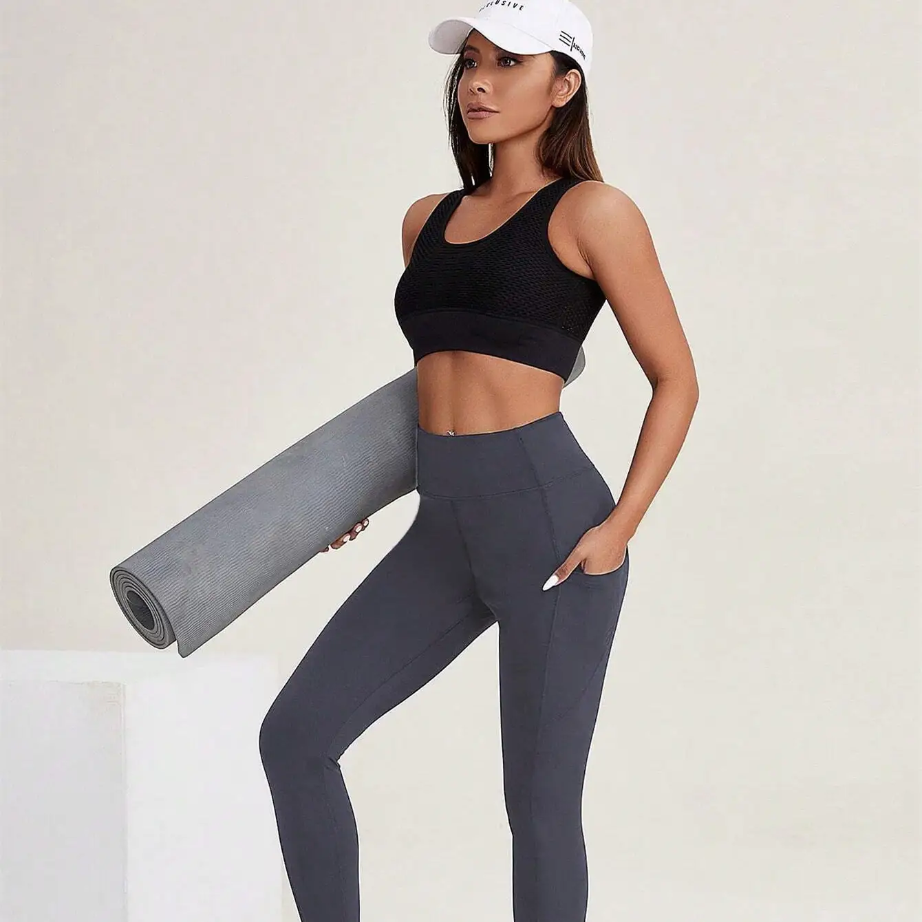 Leggings deportivos de cintura sólida y sólida de yoga básica